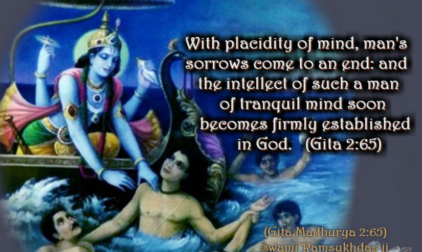 Krishna: With placidity of mind, all his sorrows come to an end: and the intellect of such a person of tranquil mind soon becomes firmly established in God. (Gita 2:65)