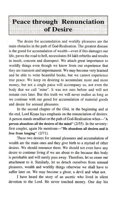 20. Peace through Renunciation of Desire. 1
