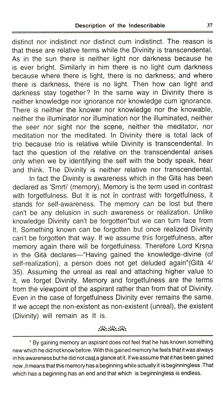 Realization of Freedom from Evils 2..Eternal Union with God and Its Realization 4. Quest for Truth and Self-Realization 5. Effacement of Egoism and God-Realization 6. Divinity Beyond the Ken of Instruments 8. Description of the Indescribable 9. Silence – A Spiritual Discipline |